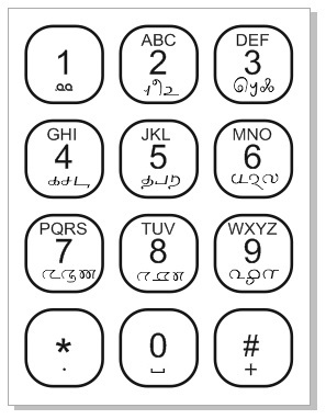 சிறப்பம்ச கைபேசிகளிலுள்ள விசையட்டையில் மென்தமிழ் எழுத்துக்கள் கீழ்க்கண்ட படத்தில் உள்ளது போல் பயன்படுத்தவேண்டும். மென்தமிழில் விசையட்டையில் தட்டும்போது திரையில் மூன்று தமிழ் வார்த்தைகள் முன்கணிக்கப்பட அதனை *, 0 மற்றும் # விசை மூலம் தேர்ந்தெடுக்க வேண்டும். வார்த்தையைத் தேர்ந்தெடுத்த பின் * அழுத்தினால், முற்றுப்புள்ளி, அரைப்புள்ளி, காற்புள்ளி போன்ற நிறுத்தக்குறிகள் வரவேண்டும். இல்லையென்றால் இடைவெளி வரவேண்டும். நீண்ட நேரம் * அழுத்தினால் நிறுத்தக்குறிகளும், 0 அழுத்தினால் இடைவெளியும் வரவேண்டும்.